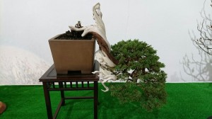 また、野梅だけでなく、真柏や蝋梅、南天の木、赤松などの盆栽も展示しており、